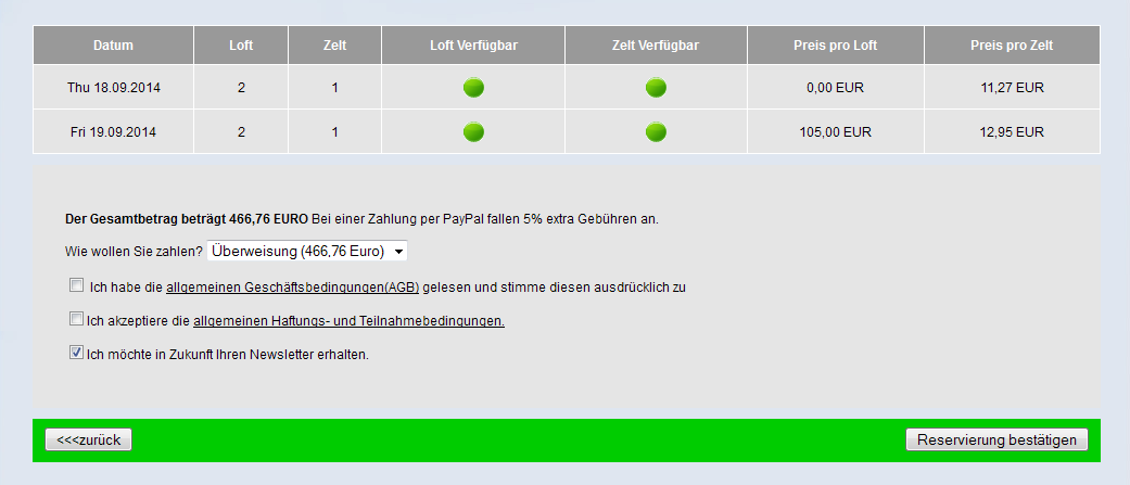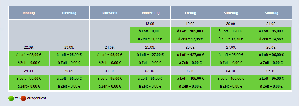 Leistungen: Online-Reservierungstool: beliebig viele Übernachtungsmöglichkeiten, unterschiedliche Preise pro Tag, Einstellung der Saison, erfassen und bearbeiten der Bestellungen, umfassender Administrationsbereich; mehrsprachige Eingabemaske für Kundendaten, Datepicker, ermittlung freier Plätze, Kalenderfunktion, CSV-Export, Anmeldung zum Newsletter